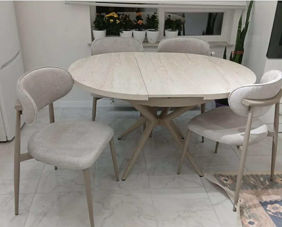 The Zen Dining Table Set combines minimalist elegance with practical versatility. Featuring a sophisticated stone effect tabletop paired with a warm taupe frame, this extendable design seamlessly transitions from intimate dinners for four to gracious entertaining for eight guests. The neutral palette complements any contemporary interior, while the smooth stone finish offers durability and easy maintenance. Perfect for modern homes seeking refined style without compromise on functionality.